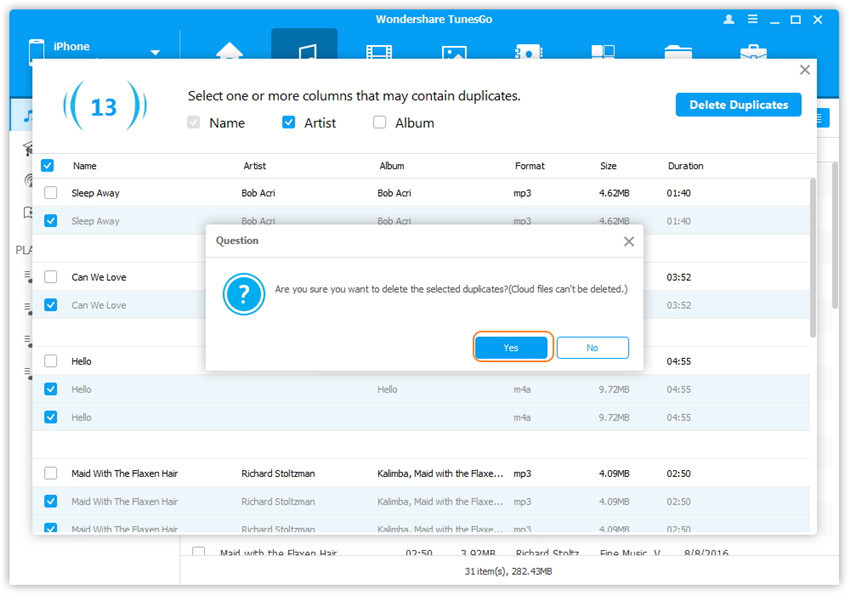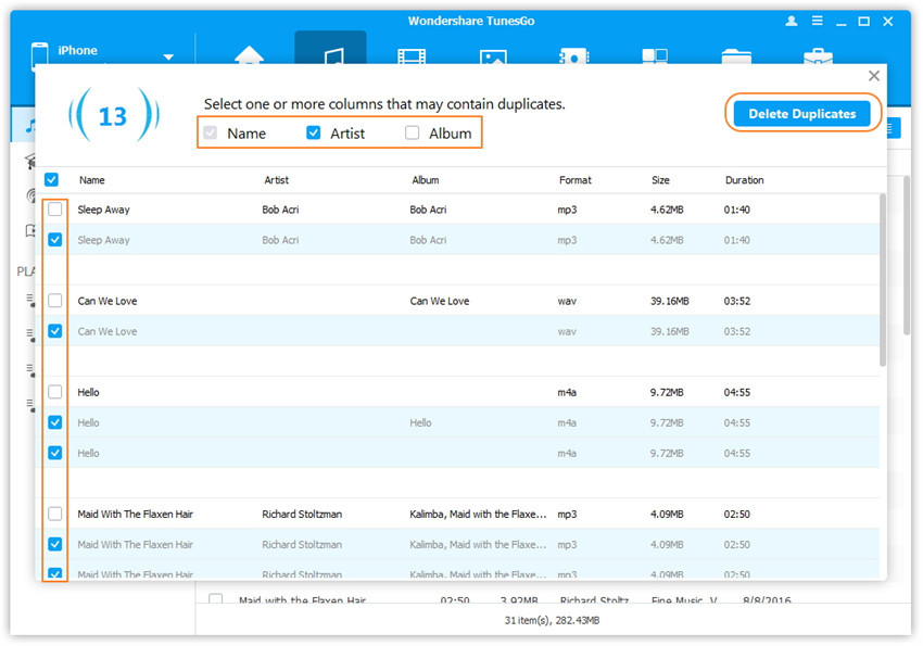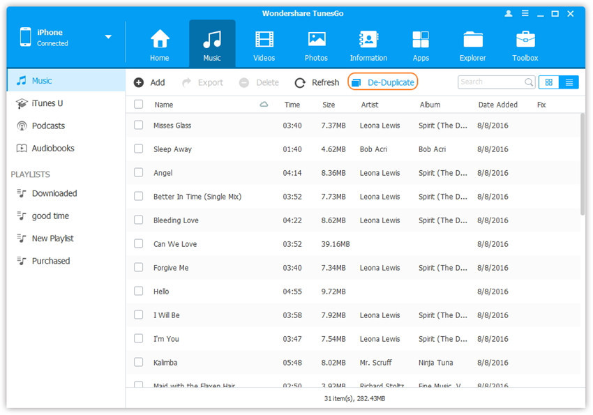 Cosa aspetti? Cancella le canzoni doppie dal tuo cellulare e libera spazio prezioso in memoria. TunesGO supporta iPhone, iPad, iPod e tutti i dispositivi Android come Samsung Galaxy, HTC, LG, Huawei, Honor, OnePlus, Motorola, Sony, Google, ecc.......